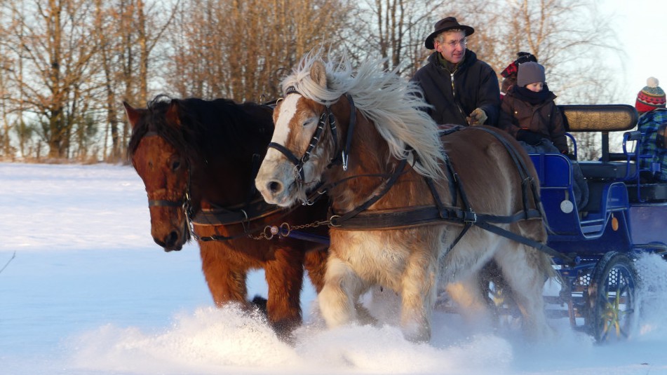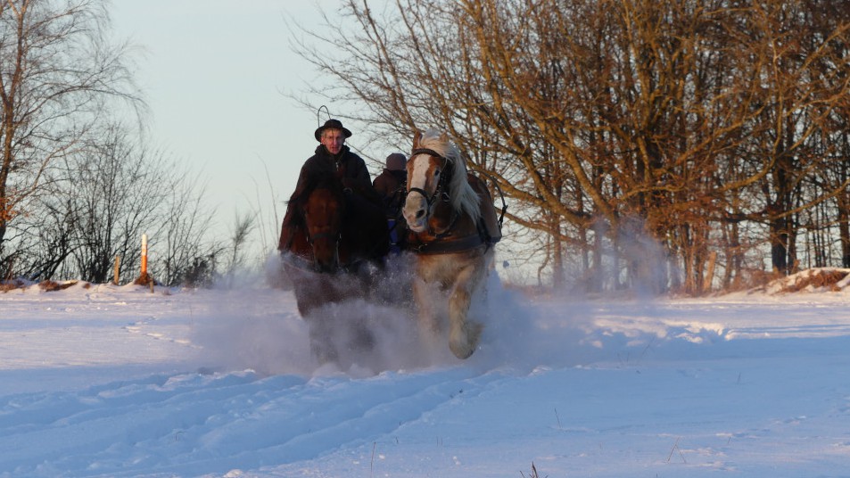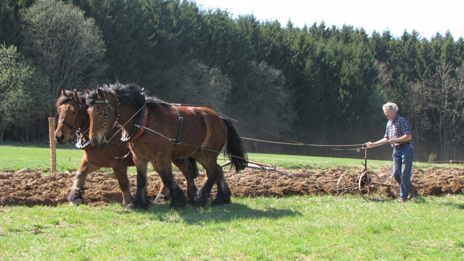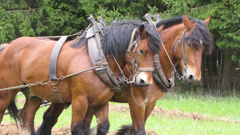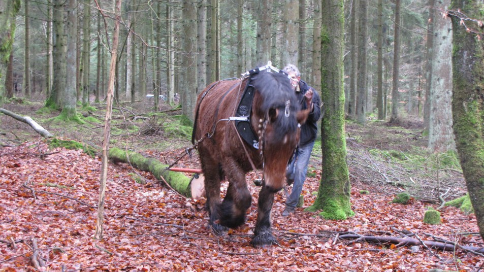 Ouvrir l'image "Débardage en forêt avec le cheval de trait" Débardage en forêt avec le cheval de trait